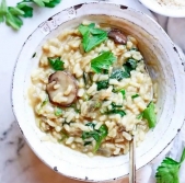 Gobova rižota z mlado špinačo