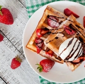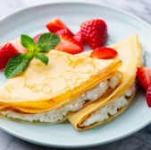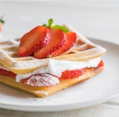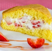 Špargljeva panakota z biskvitnimi kockami in svežimi jagodami