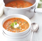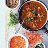 Orientalska enolončnica s čičerko, paradižnikom in špinačo