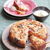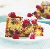 Opečen bananin kruh z vaniljevo skuto in malinami