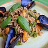 Testenine s šparglji in školjkami