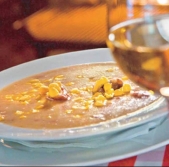 Kremna juha iz zelene z ovčjim sirom in kruhki z bučnim oljem