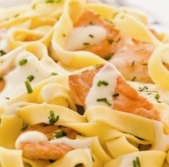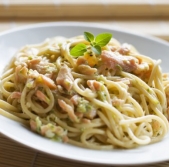 Široki rezanci s čemažem in dimljenim lososom