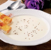 Smetanova juha s kumino in rezinami opečenega kruha