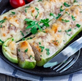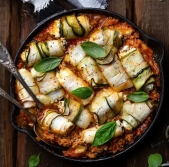 Pečeni bučkini zvitki z ricotto v mletem mesu