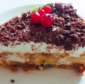 Torta brez peke z grškim jogurtom, medenjaki in bananami