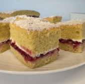 Ovsene rezine s kokosom, arašidovim maslom in jagodno čija marmelado