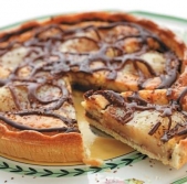 Torta s hruškami in čokoladnim prelivom