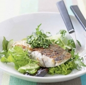 Hrustljavo pečena riba s pestom iz oreškov makadamija