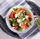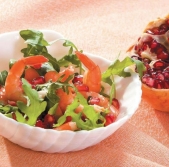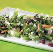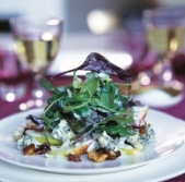 Solata s hruško, datlji in orehi ter prelivom iz sira z modro plesnijo