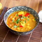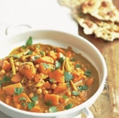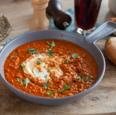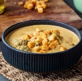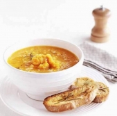 Juha iz sladkega krompirja s popečenimi česnovimi kruhki