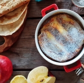 Gratinirane palačinke z dušenimi jabolki in skuto