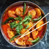 Pikantna juha laksa z rezanci, kozicami in karijem