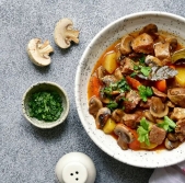Svinjski kotleti z zelenjavo v jabolčniku po irsko